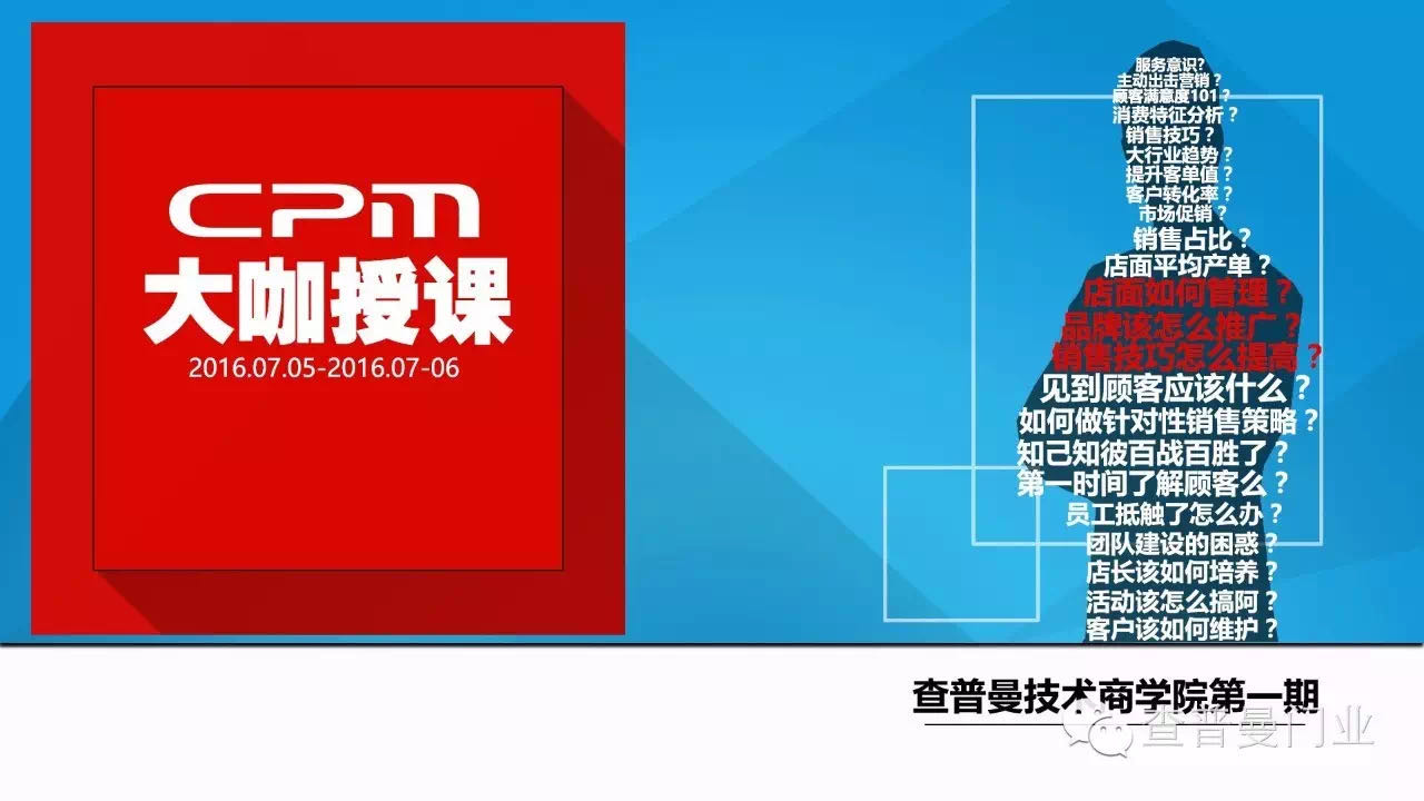 查普曼虽然是个新生力量,可这些问题查普曼早就看眼里。7月5日-7月6日,查普曼酝酿已久的风暴计划——查普曼技术商学院正式成立。所谓风暴计划,就是通过核心力量辐射扩散,影响整个行业。查普曼就是整个风暴中的能力点。最终点与点形成线,线与线形成面,爆发出无限扩大的力量。